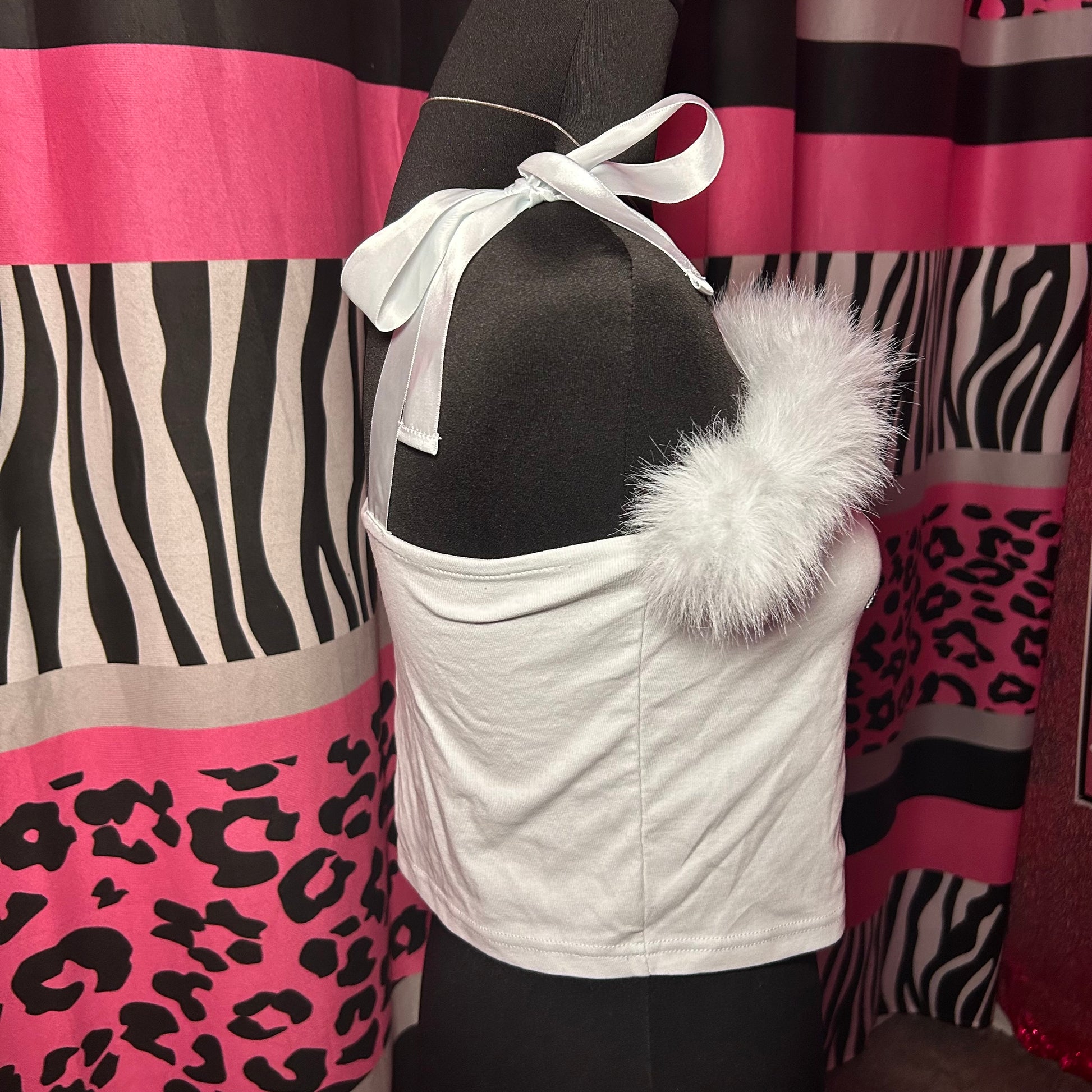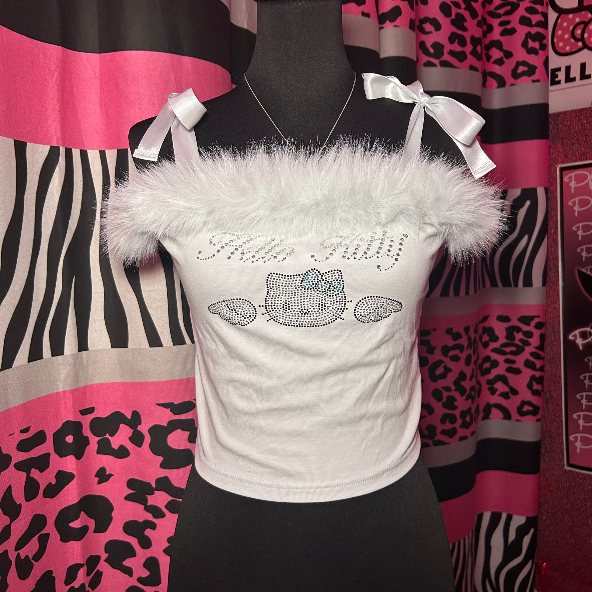 2000s Hello Kitty Angel Fur Rhinestone Tube Top🪽