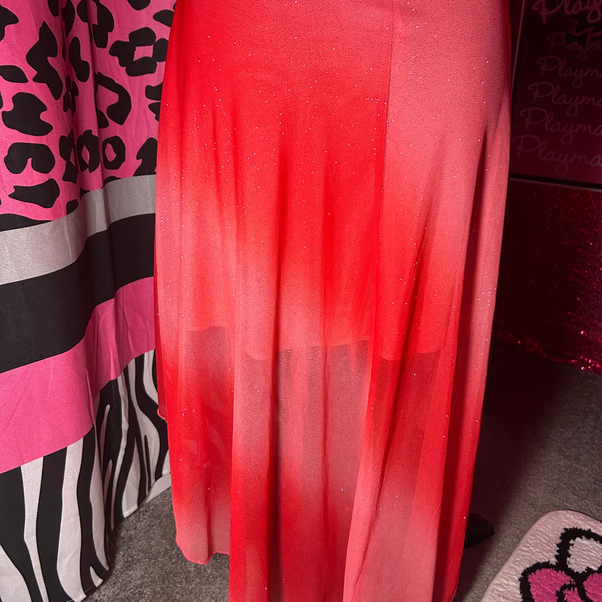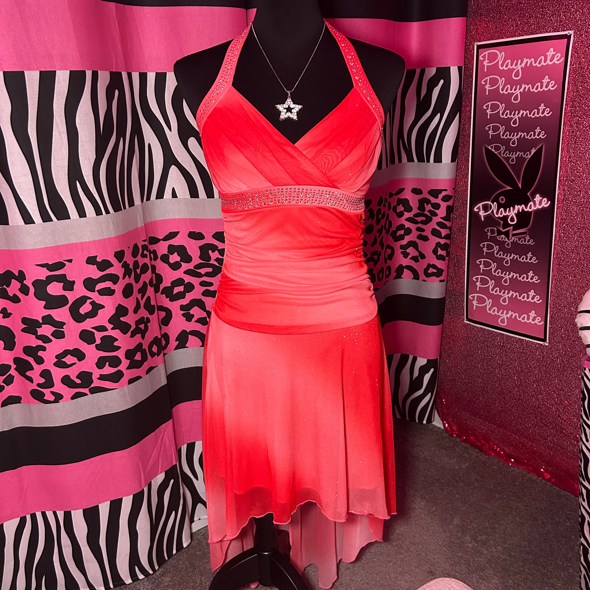 Vintage 2000s Orange Glitter Halter Rhinestone Dress💋